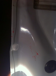 Somehow Darren managed to shut his finger in the door of his truck. He slammed it all the way shut. It was pretty gory. I have a feeling that he will be leaving the blood spatter for a while as a reminder to remove his finger from the door jamb before shutting it. Pretty awesome. His finger is mashed up pretty good but since he is a tough guy he has just put a couple of bandaids on and called it good.